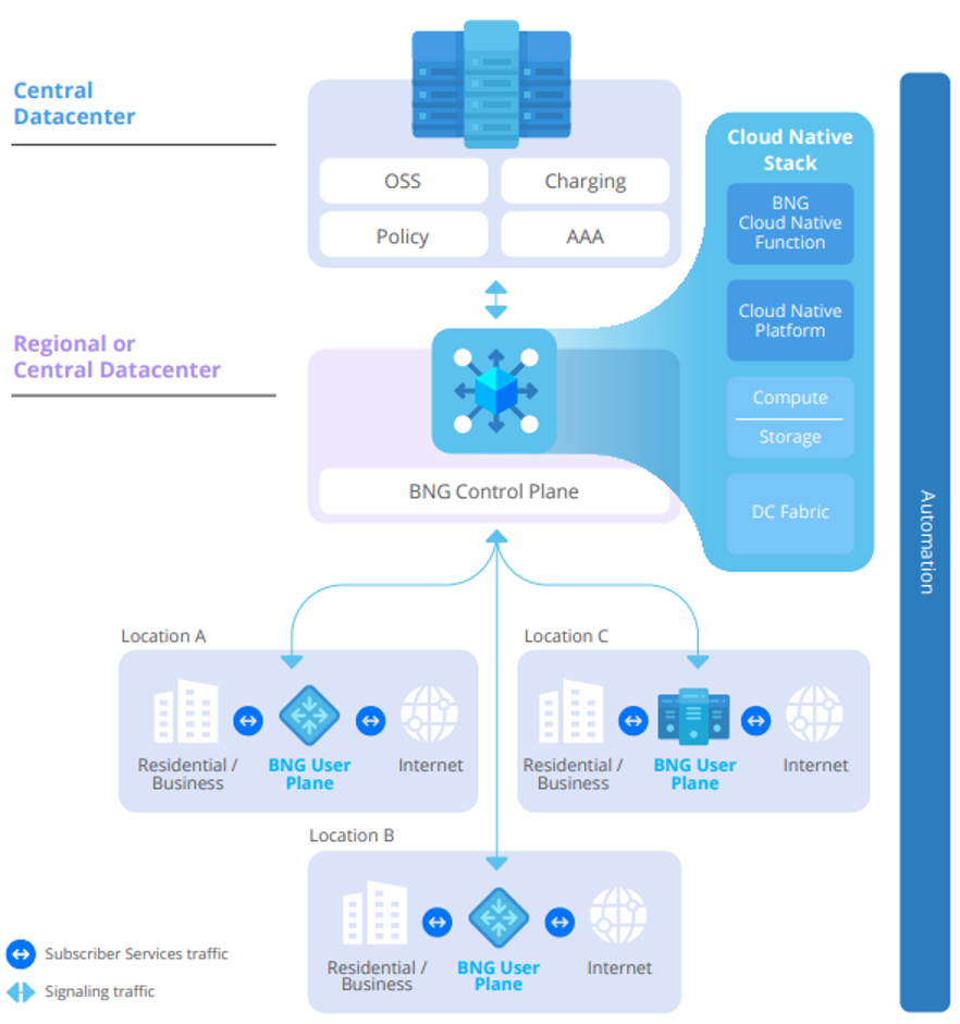Figure 2. Example of distributed deployment and a cloud-native BNG stack