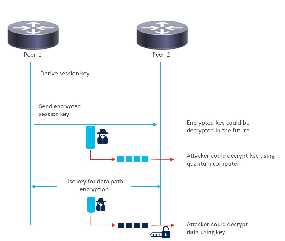 Public-key cryptography is ubiquitous in modern information security applications such as IPsec, MACsec, and digital signatures. The current public-key cryptography algorithms are based on mathematical problems, such as the factorization of large numbers, which are daunting for classical computers to solve. Shor’s algorithm provides a way for quantum computers to solve these mathematical problems much faster than classical computers. Once a sufficiently large quantum computer is built, existing public-key cryptography (such as RSA, Diffie-Hellman, ECC, and others) will no longer be secure, which will render most current uses of cryptography vulnerable to attacks.