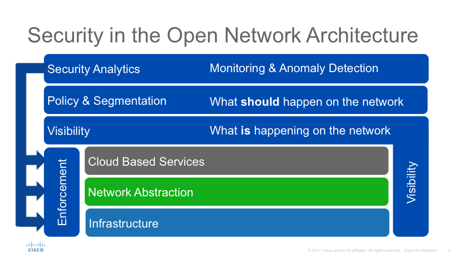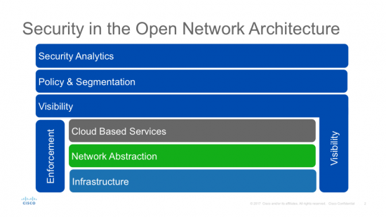 As stated earlier, the focus for traditional Service Provider security models has been on enforcement methods across the layers, and these remain a critical foundation to the successful security architecture. The other key component of the pervasive security model in the Open Network Architecture is Visibility. The key lesson we outlined earlier is that a successful security strategy requires the ability to understand what is happening inside our networks, both at the perimeter and within. After all, you can’t protect what you can’t see! Since each layer on the ONA performs a different task, it is critical for visibility to include each layer in order to gather as much data about what is actually happening on the network as possible.