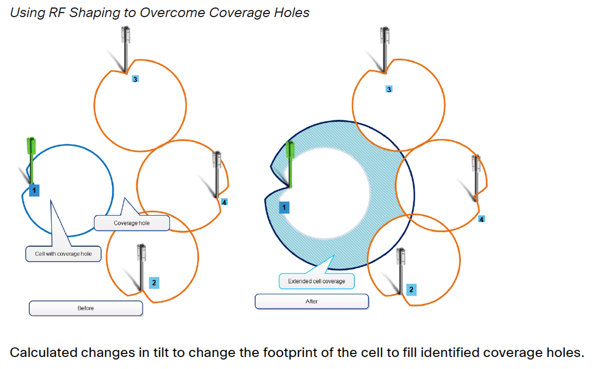 Balancing the RF environment is an intricate and exceptionally time-consuming task. Engineers identify candidate antennas with RF planning tools, select the proper tilt setting, monitor and assess the impact of the tilt on the affected and surrounding sites, and possibly make additional tilts to compensate for the tilt made to the selected site. In most instances, the impact of a tilt change is not observed for several days, so the engineer must continually return to monitoring and observing KPIs on the affected cells until they are confident the tilt was effective.