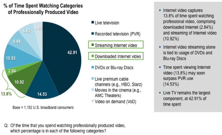 Figure 1. U.S. Consumers Spend More Time Watching Internet Video than Viewing DVDs/Blu-ray Discs, VoD Content, or Live Premium Cable.