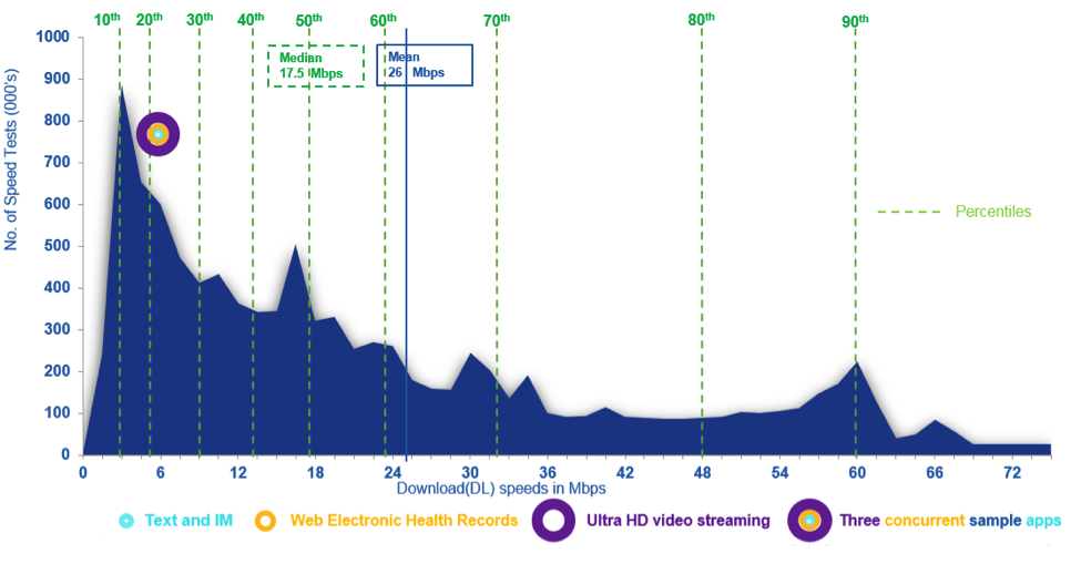 Comparing it to the speed tests distribution in 2015, there has been improvement in experienced median speeds as well as average speeds in Mbps.