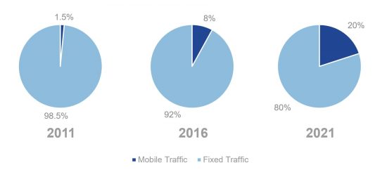 1. Mobile will approach 20% of total fixed and mobile IP traffic by 2021
