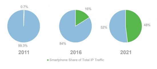 2. Smartphones will be responsible for 48% of all fixed and mobile traffic by 2021