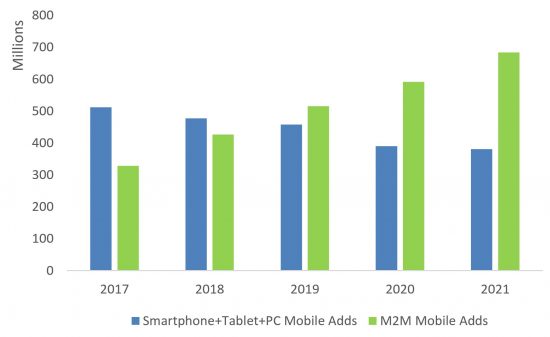 3. Starting in 2019, more “things” will be added to mobile networks each year than devices