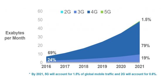 4. 5G will generate 1.5% of traffic by 2021