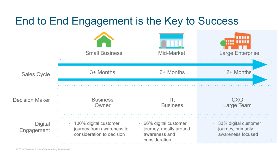 Large enterprises are a complex beast. Merely mapping the buying process as well as the customer journey is not only complicated, but also varies across different vertical segments and is consistently multi-faceted and longer in duration than SMB and midmarket enterprises.