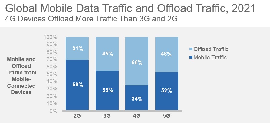 Figure 2: Offload Traffic by mobile technology by 2021