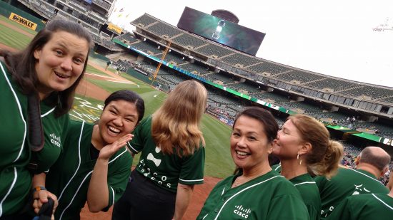 The Cisco Singers then take the field to sing the U.S. National Anthem at a Major League Baseball game. It’s a thrill, and it’s a moment I never thought I’d experience at, of all places, work!