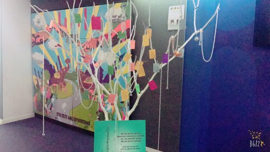 We set up an arid tree that we dubbed our “musical tree” at our office bay where the team answered the question, “We are better together, tell us why?”