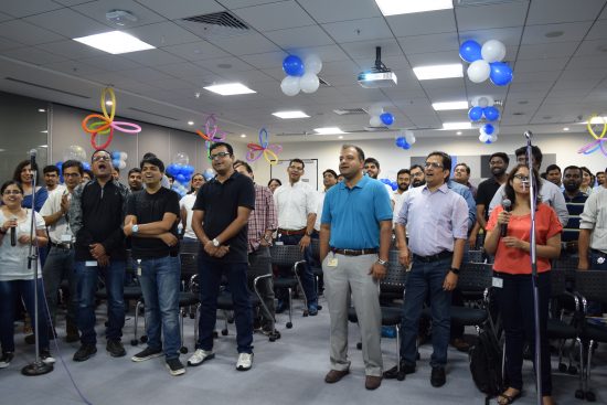 Our conference rooms were decorated with red and blue balloons, musical instruments were fine-tuned and the recording equipment was all set. We had some “stage fright” but soon we were all gleefully singing at the top of their voices!