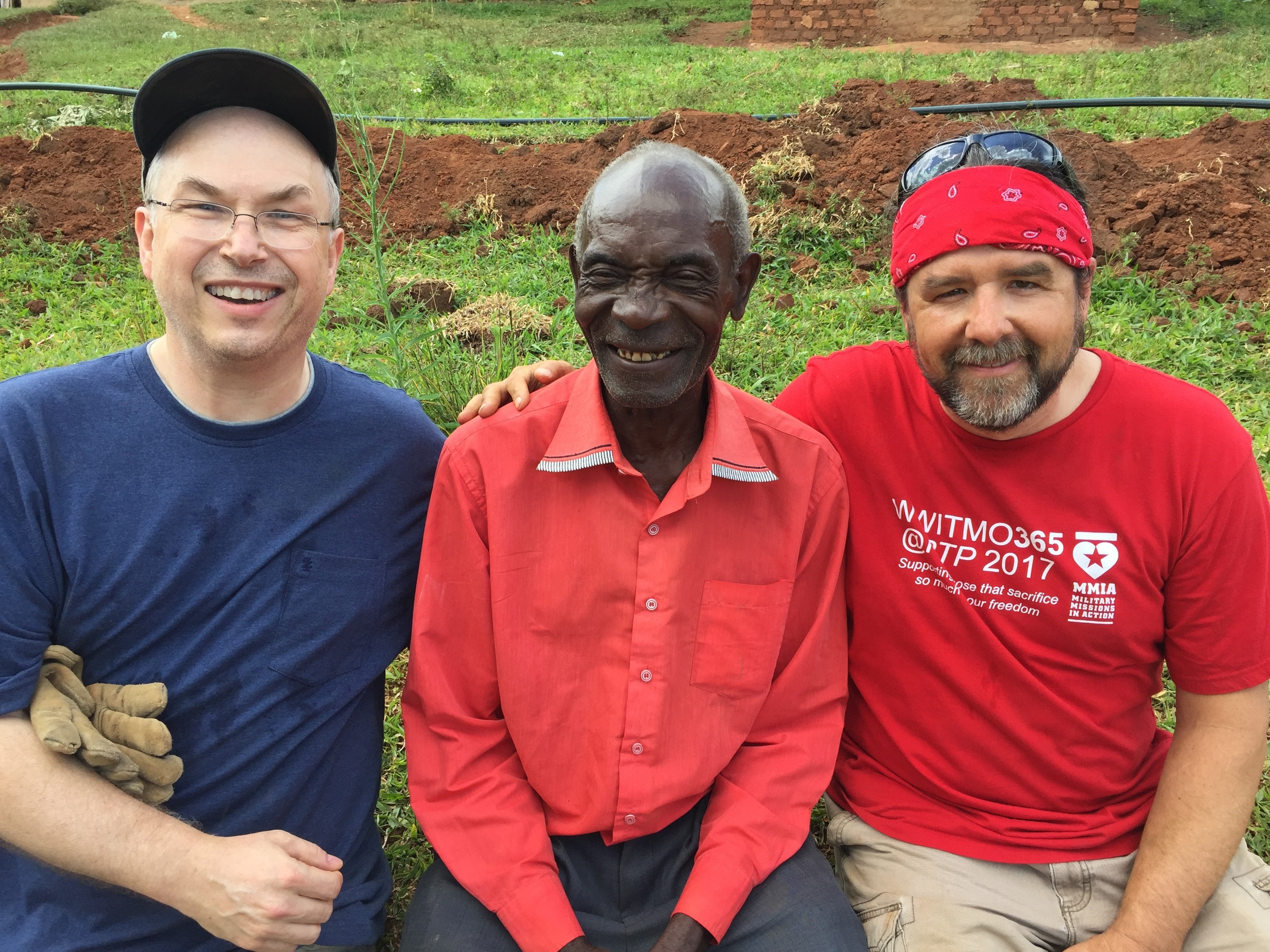 Win, Raphael (a village Elder) and Greg taking break from the water project