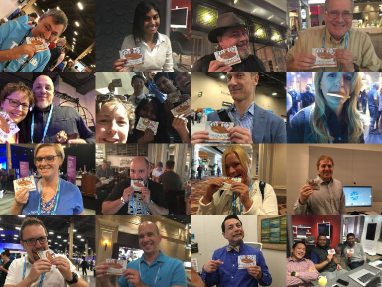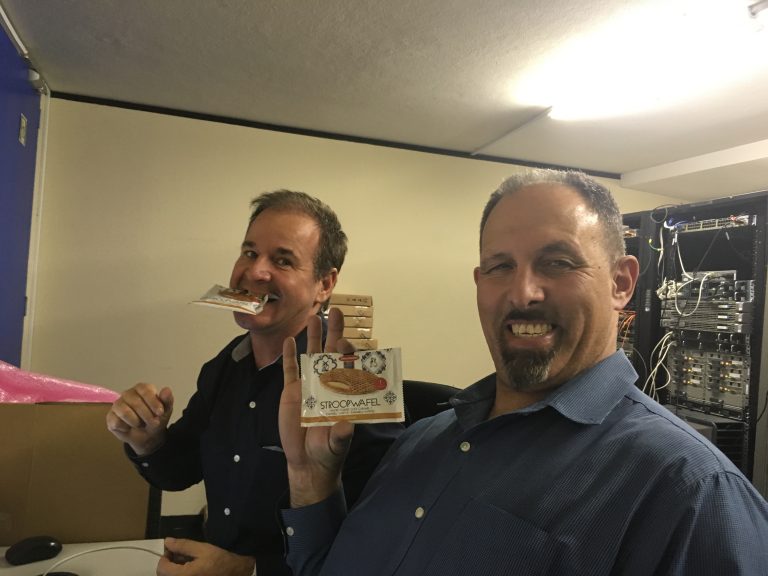 In my current position, where I work on Software Defined Access (SDA), fellow co-workers who have followed me on Twitter and Instagram noticed the Stroopwafel deliveries, and began to ask when I was coming to THEIR offices. Everyone wanted to try Stroopwafels, and now I cannot travel to an event without bringing Stroopwafels with me. All I ask for in return is that they share fun photos of them with their Stroopwafels on social media – and almost everyone does!