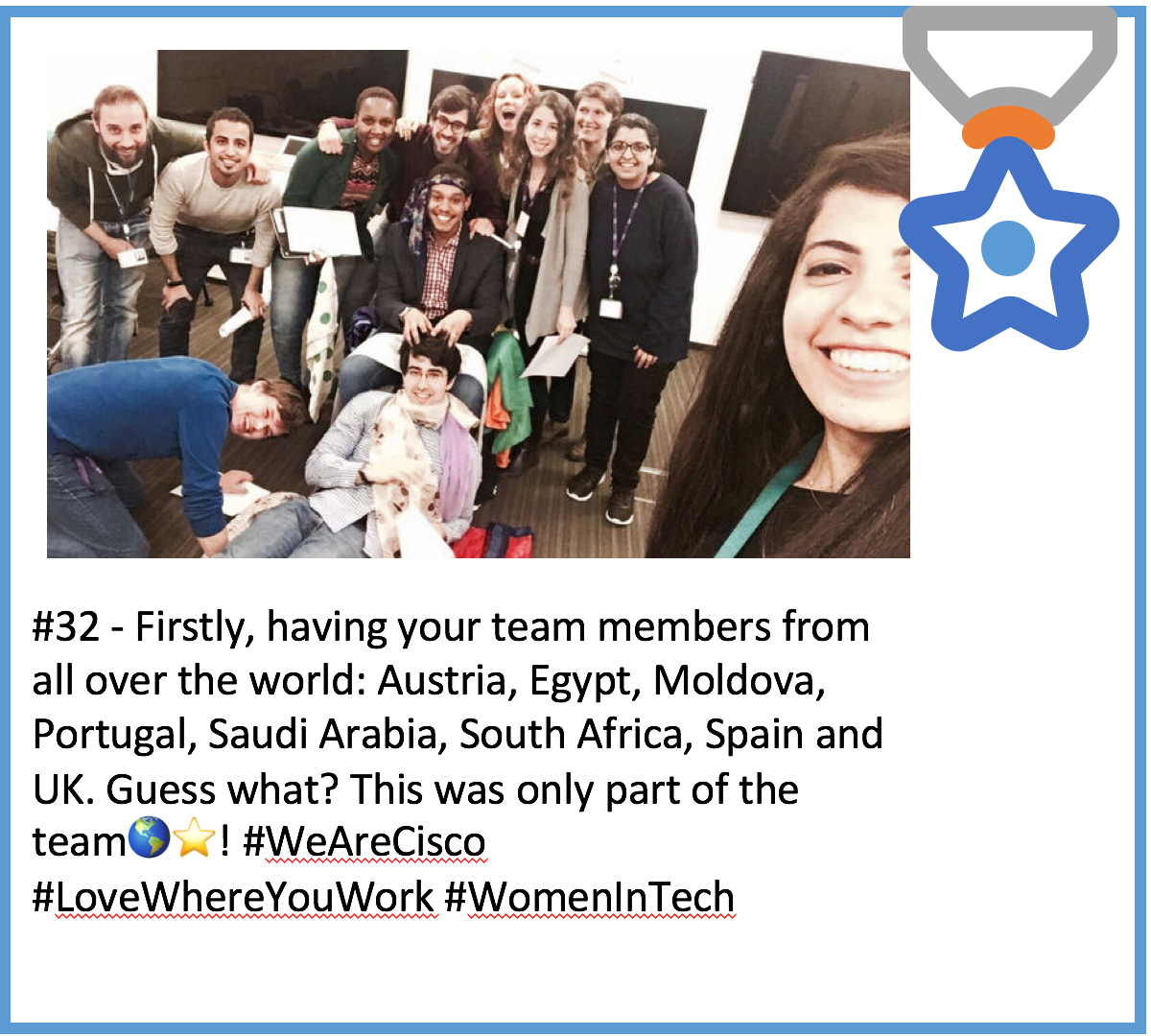 Every year, Cisco’s Talent Brand team hosts the #WeAreCisco #LoveWhereYouWork contest where we get to share moments that matter to us and why we love working at Cisco throughout social media.