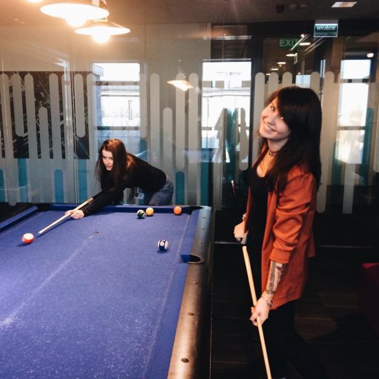 Sometimes we work hard and sometimes we have a little break from work! ❤ In Cisco Krakow we have very cool play-rooms for downtime that help us to unwind or even brainstorm a bit with colleagues. I definitely love capturing moments like these around the office that showcase our fun, laid back side as well. Hard work deserves hard play! 😊