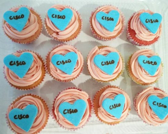 Soon thereafter, a Cisco co-worker asked if I could possibly do 150 cupcakes for an event she was hosting. Up until then, I had never made more than 24-30 cupcakes at any one time, and now I was being asked to do 150! There is truly something to be said about the level of trust, and confidence your Cisco co-workers place in you. She was convinced I was the baker for this event, and so…I took up the challenge! I have since baked for a couple of teams on multiple occasions and each one has been a rewarding experience